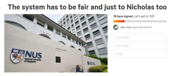 Seeing that the matter has been blown up, "Gary Yeow" started a petition calling for people to defend NUS' stance, or lack thereof. He said that it is "manifestly unjust" for people to single out Nicholas Lim now or think that those who are more vocal are right.
